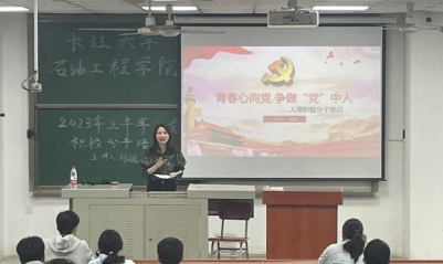 (通讯员 左清颖 张硕 /文 张硕/摄)2023年04月10日下午六时,太阳成城集团tyc234cc官网于武教B-103开展了入党积极分子培训。公司党委副书记刘娥主讲“青春心向党,争做‘党’中人”党课,本科生及研究生支部共97名入党积极分子参加培训。