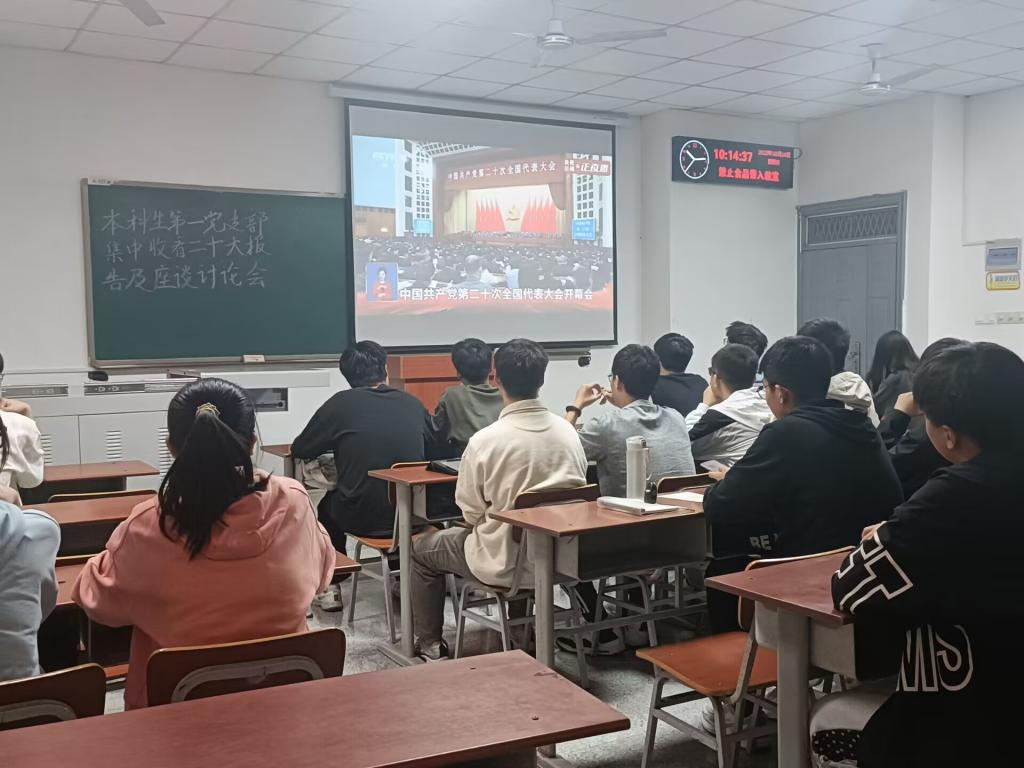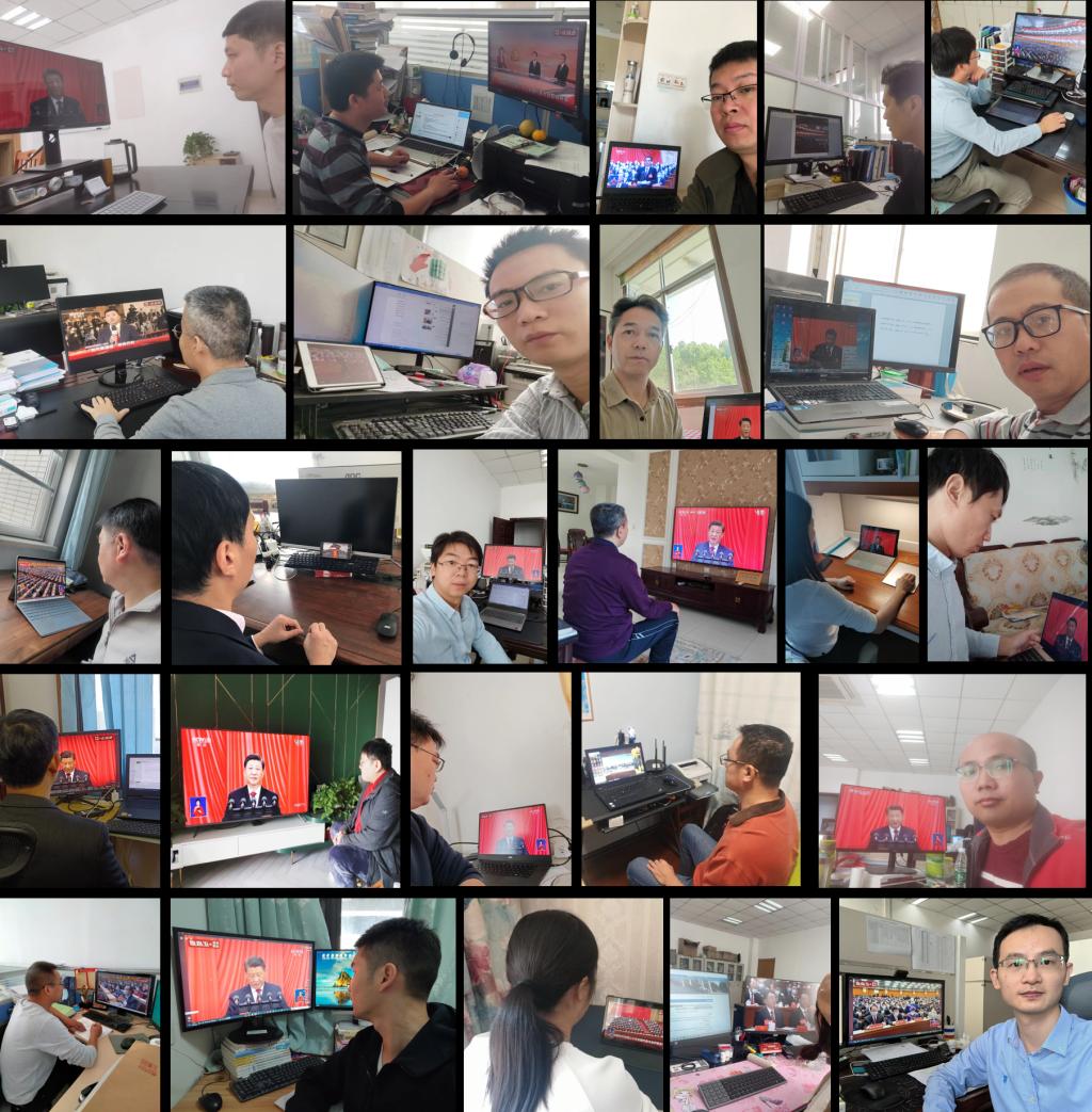 (通讯员 周晓峰)10月16日上午10点,中国共产党第二十次全国代表大会在人民大会堂隆重开幕。太阳成城集团tyc234cc官网师生通过多种渠道收听收看党的二十大开幕会盛况,认真聆听习近平总书记所作的报告。公司组织党委理论学习中心组、机关党支部在石油科技大楼C113会议室集中收看,各教工党支部、员工党支部在教室或腾讯会议平台集中收看,其他教师和员工纷纷通过电视、电脑和手机客户端等方式自行收看,共同见证这一伟大历史性时刻。