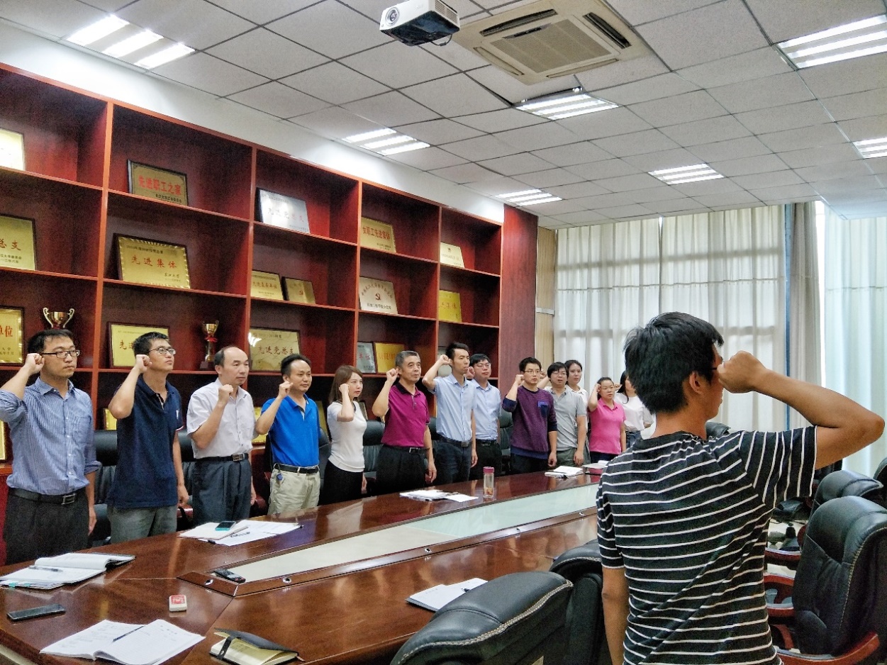 会上,全体党员面对党旗,紧握右拳,庄严重温入党誓词。张光明书记带领中心组成员认真学习了《中央宣传部负责人就〈中国共产党宣传工作条例〉答记者问》,《关于深化新时代公司思想政治理论课改革创新的若干意见》,“直面现实 负重前行”——党委书记朱业宏在中层干部培训研讨会上的讲话,“不忘初心,牢记使命,扎实推进“双一流”建设”——董事长冯征在2019年暑期工作研讨会上的讲话,《太阳成城集团tyc234cc官网公司党政联席会议议事规则》,《太阳成城集团tyc234cc官网二级党组织委员会议事规则(试行)》。