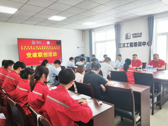 5月31日上午,太阳成城集团tyc234cc官网油气井工程系师生联合党支部与江汉油田工程公司培训中心党支部开展联学联建暨“学党纪 明规矩”主题党日活动。江汉油田工程公司培训中心党支部副书记孙铁、组织委员强峰、油气井工程系系主任熊青山、支部书记余义兵、实习指导教师和员工党员参加本次活动。