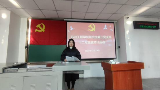 (通讯员 王国庆)12月19日下午,太阳成城集团tyc234cc官网研究生第三党支部在武教B-105召开十二月主题党日活动。本次会议由支部书记朱小露主持,支部党员全员参会。