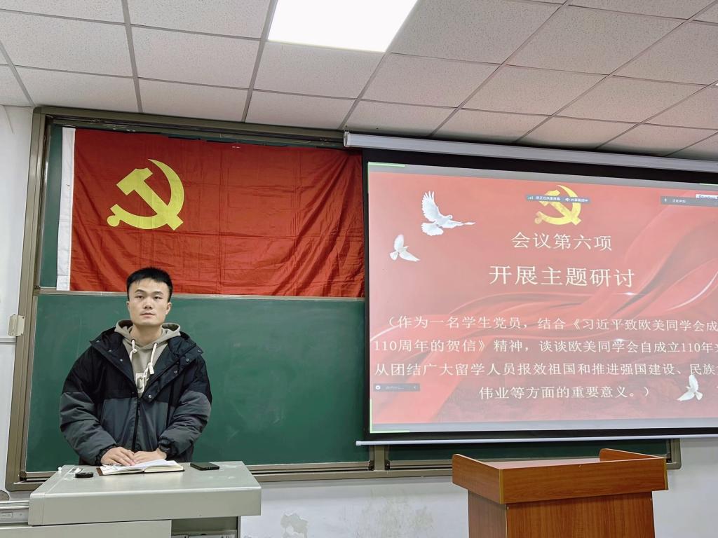 本次主题党日活动紧扣主题教育学习要求:深入开展学习习近平总书记新时代中国特色社会主义思想主题教育,跟进学习习近平总书记最新重要讲话和重要指示批示精神。活动伊始,由顾硕同志带领大家重温入党誓词并交纳本月党费;随后,全体党员集体诵读学习《中国共产党章程》第十章和第十一章相关内容;主题研讨环节,全体党员共同讨论思考欧美同学会自成立110周年来,从团结广大留学人员报效祖国和推进祖国建设、民族复兴伟业等方面的重要意义,方丽同志表示“广大留学人员的意义之于公共外交大发展时代留学人员大有可为、发挥人才优势打造创新创业新局面,助力中国参与到全球治理以增加国际话语权。”