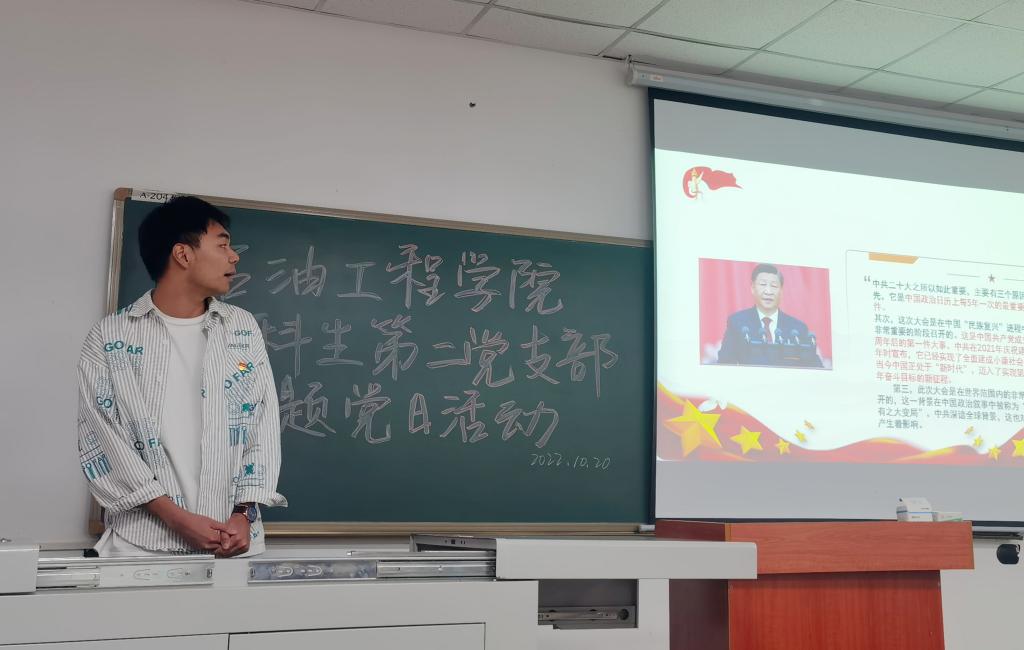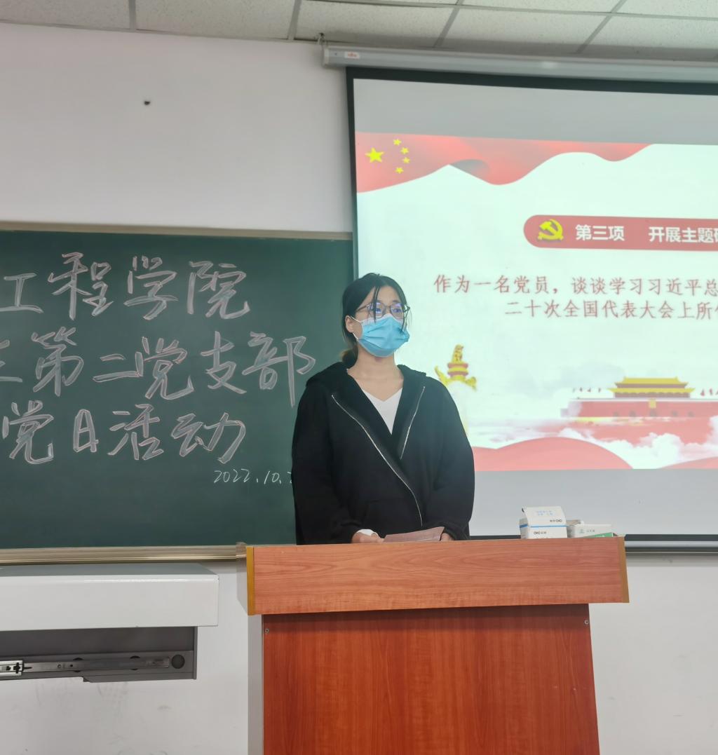 (通讯员任堂政)2022年10月20日下午五时二十分许,太阳成城集团tyc234cc官网本科生第二党支部于A-204召开十月党日主题活动。本次会议由支部冯贯榆同志主持,支部31名本科生党员、党委副书记刘娥参会。