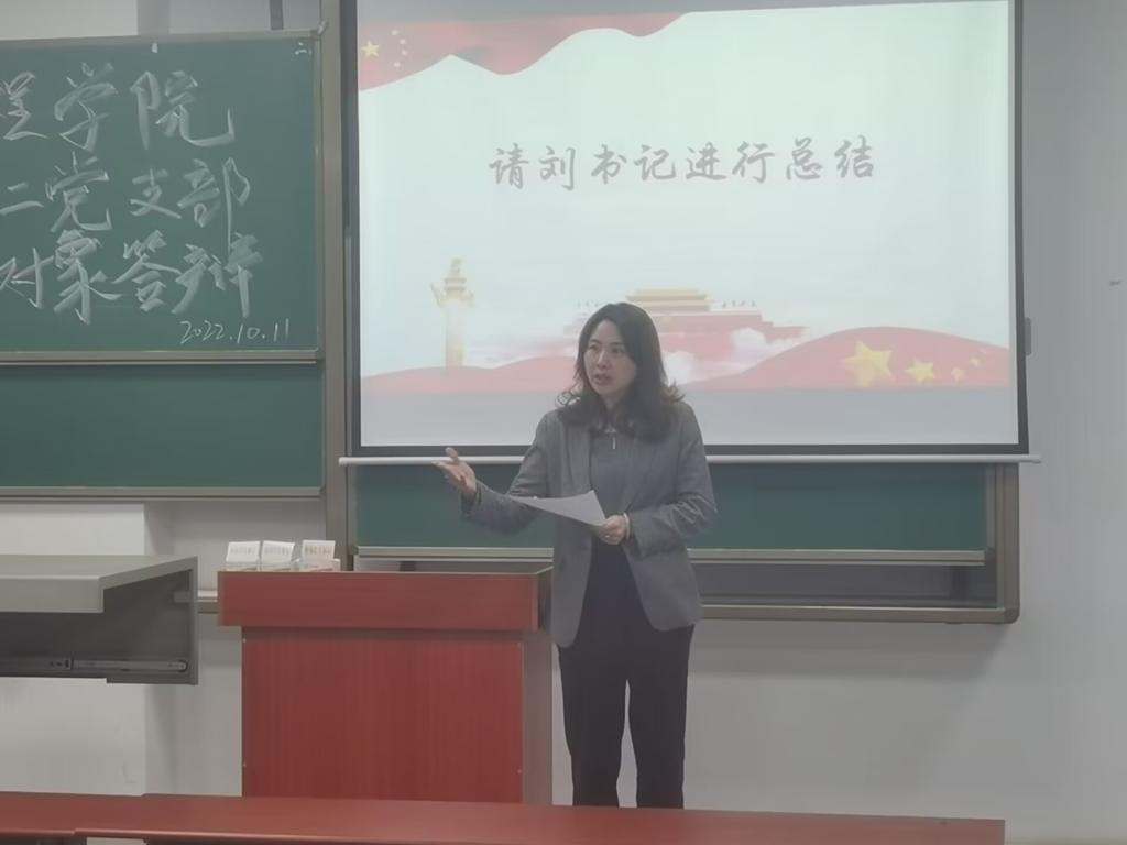 最后,刘娥书记做总结性讲话,并对每位拟发展同志的答辩做了正面肯定点评,同时提出各位拟发展对象要时刻学习他人的优秀之处,增强理想信念,提高党性觉悟,以优秀党员同志为榜样。
