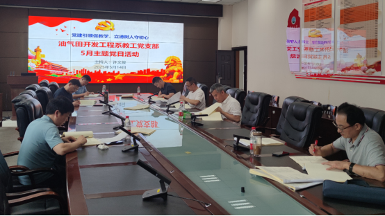 (通讯员:郝晨 白振玮)5月14日下午4时,油气田开发工程系教工党支部在石油科技大楼B113会议室举行5月主题党日活动。活动由支部书记许文俊同志主持,全体党员教师参加。