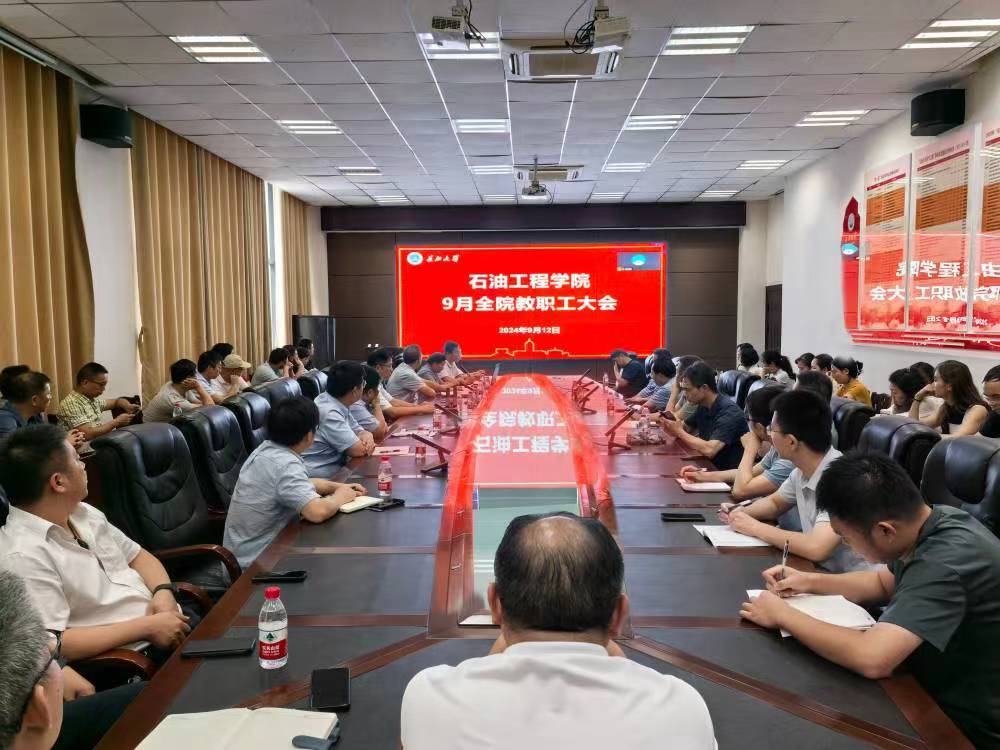 9月12日下午,太阳成城集团tyc234cc官网在石油科技大楼B113会议室召开全院教职工大会,部署新学期工作,推进公司高质量发展。经理宇波主持,全体教职工参加。