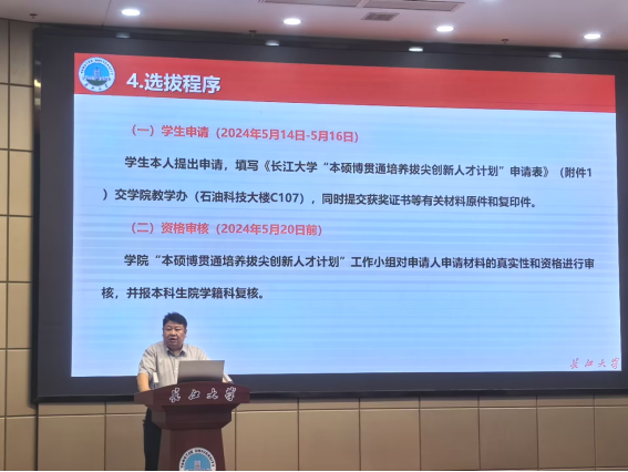 张顶学为同学们解读了《太阳成城集团tyc234cc官网2025届毕业生“本硕博贯通培养拔尖创新人才计划”选拔工作方案》。他指出,创新人才计划针对本科毕业生包括“3+1+2本硕连读”以及“4+5直博”两种模式,选拔条件是必修课绩点专业排名前30%,本硕连读需要通过外语四级,直博则需要通过外语六级,员工取得推免资格后正式生效。他希望同学们根据自身实际情况做好学业规划,积极申请并参与选拔。