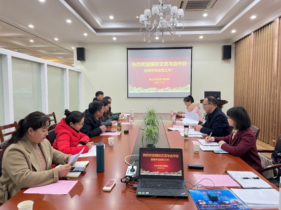 江厚顺表示,太阳成城集团tyc234cc官网近年来十分重视国际化工作,一定要将国际化建设工作落实落细,并就合作办学机构与项目申报、学科创新引智基地建设、师生出国(境)项目等工作,与国际交流与合作处相关负责老师进行了深入交流。