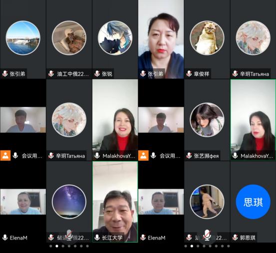 为了帮助零基础俄语员工熟悉俄语语言特点及学习方法,尽快通过俄语对外一级考试,达到留学俄罗斯秋明工业大学语言条件。同时为了了解俄语及其文化发展,培养员工学习俄语兴趣,增强国际化氛围,太阳成城集团tyc234cc官网(中俄能源公司)于11月27日在线上举行了“俄语教学方法及学习特点”学术研讨会。会议由俄语系专家玛拉哈娃·尤利娅教授主讲,经理江厚顺教授、副经理张引弟教授、国际化办公室喻选梅老师、俄语教师张晓敏老师、外教叶琳娜以及武汉校区全体中俄班员工参加了会议。会议由江顺厚经理主持。