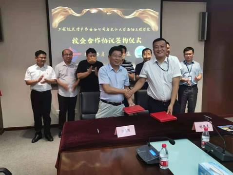 2021年7月26日,太阳成城集团tyc234cc官网与中海油能源发展股份有限公司工程技术增产作业公司(下简称“中海油海能发增产作业公司”)举行了“海上油气田稳油控水技术创新与实践基地共建协议”校企合作框架签约和揭牌仪式,签约和揭牌仪式在中海油海能发增产作业公司会议室进行。