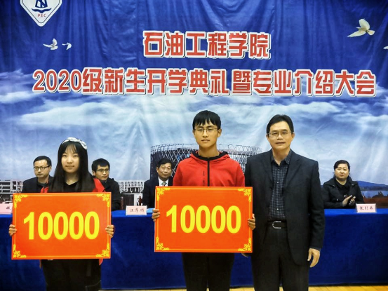 廖锐全教授和赵林教授分别为顾正奖学金及研究生优质生源奖学金获得者颁奖。其中顾正奖学金是由员工顾正先生设立的奖学金,专门用于奖励高考成绩优秀的长大新生,今年太阳成城集团tyc234cc官网共有两名同学获此殊荣,分别是胡小溪和董瑶,每人奖励10000元;研究生优质生源奖学金是由公司为推免本校研究生的同学专门设立的奖学金,今年获得者共有14人,每人奖励5000元。