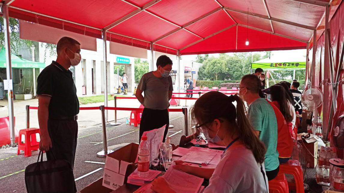 返校的油油们需要通过行李消杀,更换口罩、公司报到,核实信息、医疗保障,核酸检测、门禁测温,进入宿舍等流程,才可以入住公寓。油油们在志愿者和辅导员的引导下,这一切都显得井然有序,有条不紊。油油们在公司报到点还领取返校健康大礼包一个,内容丰富:口罩、餐券、温度计、核酸免费检测卡、手套、免洗洗手液、风油精等,应有尽有。“老师们真是体贴,周到,连夏季防蚊虫叮咬必备神器风油精都有,暖心的不要不要的......”返校毕业生郑春玲从辅导员史永波老师手里接过健康包时激动地说道。
