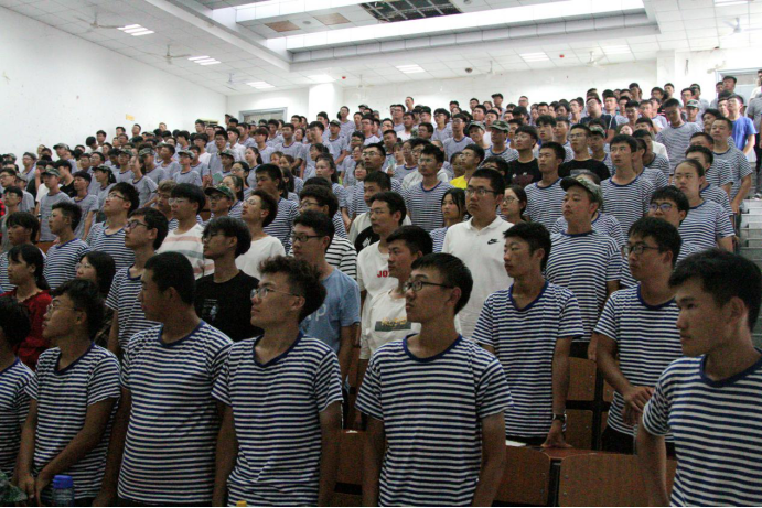 中秋节的假期给新生的军训增添了亮丽的一笔,上午的拉练也圆满结束。下午,新生同学们便来到了教学楼B座,倾听学长学姐们的分享。就坐完毕后,新生辅导员刘少文老师主持并宣布大会开始。刘老师讲到:“此次克拉玛依之行,我们见识了许多,获益匪浅,希望借助这次大会的机会让大家对石油行业有更深的一些了解。”社会实践小分队队长陈金建紧接刘老师的话音,接过话筒展开了他的演讲。陈金建从社会实践的前期招人讲起,再经过一系列的准备--收集信息、准备资料、规划路线、前期写稿······之后,实践活动正式展开。他讲到:此次克拉玛依之行并不容易,几十个小时的火车、一顿顿的泡面、辗转的夜晚,等等。过程虽然比较辛苦,但正是这样的辛苦才让我们的实践活动变得更加有意义。随后,他介绍了新疆之旅到达的地点和参观的流程以及对新疆的看法,让新生同学们对新疆及其石油产业有了初步的了解,台下同学也是被精彩的讲述深深吸引。