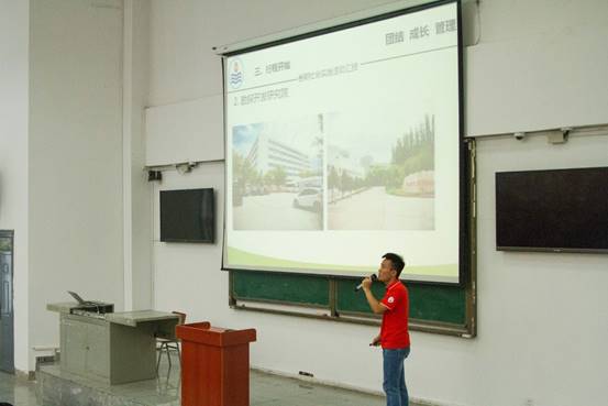 中秋节的假期给新生的军训增添了亮丽的一笔,上午的拉练也圆满结束。下午,新生同学们便来到了教学楼B102,倾听学长学姐们的分享。就坐完毕后,新生辅导员刘少文老师主持并宣布大会开始。刘老师讲到:“此次克拉玛依之行,我们见识了许多,获益匪浅,希望借助这次大会的机会让大家对石油行业有更深的一些了解。”社会实践小分队队长陈金建紧接刘老师的话音,接过话筒展开了他的演讲。陈金建从社会实践的前期招人讲起,再经过一系列的准备--收集信息、准备资料、规划路线、前期写稿……之后,实践活动正式展开。他讲到:此次克拉玛依之行并不容易,几十个小时的火车、一顿顿的泡面、辗转的夜晚,等等。过程虽然比较辛苦,但正是这样的辛苦才让我们的实践活动变得更加有意义。随后,他介绍了新疆之旅到达的地点和参观的流程以及对新疆的看法,让新生同学们对新疆及其石油产业有了初步的了解,台下同学也是被精彩的讲述深深吸引。