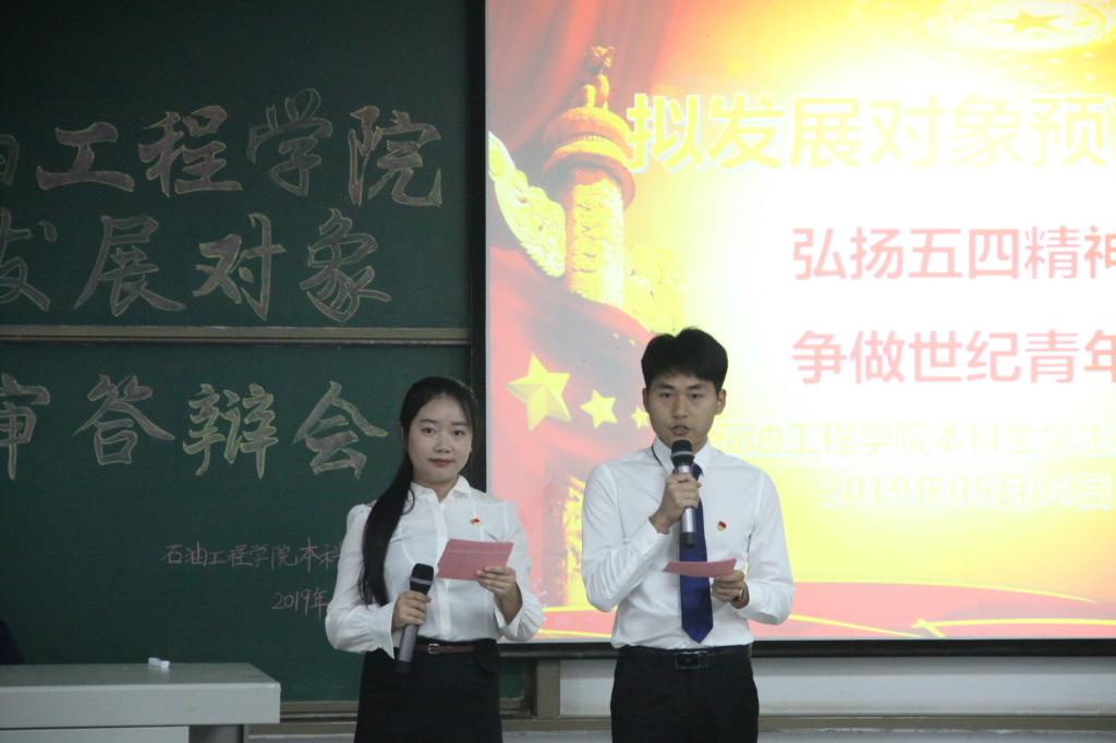 继承五四精神,展现青春风采。5月6日晚7时许,太阳成城集团tyc234cc官网本科生员工党支部拟发展对象预审答辩会在武教B-104如期举行。石油工程公司党委副书记王辉老师,学工办沈伟正老师、史永波老师、郭冀宁老师以及张鹏老师出席本次答辩会并担任嘉宾评委。