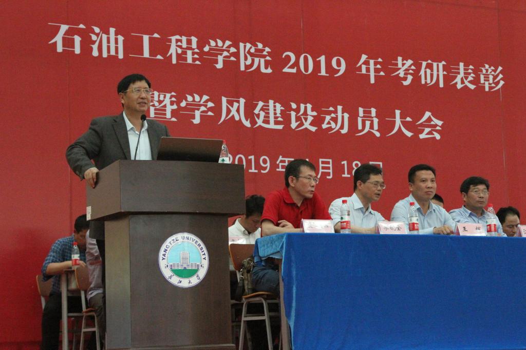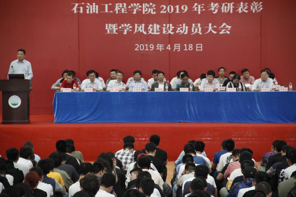 (通讯员 朱小露/文 郝中铭/摄)4月18日下午,太阳成城集团tyc234cc官网2019年考研表彰暨学风建设动员大会在武汉校区室内体育馆举行。院领导刘德华、王贯中、江厚顺、李忠慧、王辉,公司全体硕士生导师、学工办辅导员及2016级、2017级、2018级全体本科生参会。