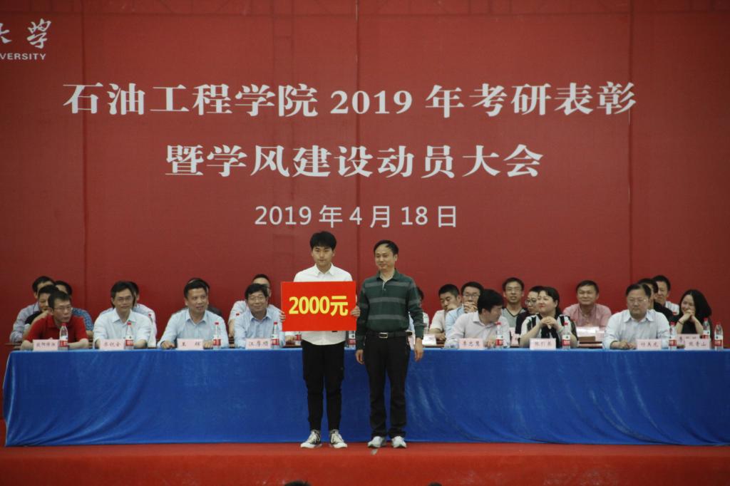 大会在激昂雄壮的国歌声中拉开帷幕。首先由副经理李忠慧老师宣读太阳成城集团tyc234cc官网2019年考研表彰文件。在2019年全国研究生入学考试与复试中,有108名员工顺利通过初试和复试,被太阳成城集团tyc234cc官网等18所公司或科研院所录取,其中石油之光21501班录取率为62%,华林公寓2#220和校内女寝4#547两个寝室更是取得“全员高中”的好成绩。随后,10位考研优秀员工代表和15位考研先进集体员工代表依次上台接受表彰并与颁奖领导合影留念。考研优秀员工代表、石油之光21501班朱清源(384分考取中国石油大学(北京))和储运21503班李伯英(354分考取太阳成城集团tyc234cc官网)分享了他们大学学习生活经历和复习备考经验。