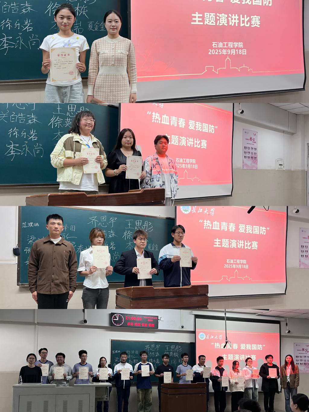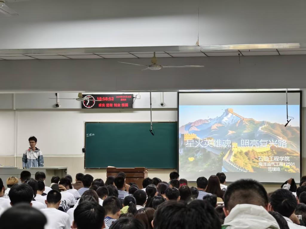 (通讯员 黄西贝 周雨薇)为深化新生国防教育,弘扬爱国主义精神,9月18日晚,公司于12教302教室成功举办“热血青春,爱我国防”2025级新生主题演讲比赛初赛。19名参赛选手以饱满的热情和深刻的思考,抒发了对国防事业的理解与热爱,展现出石油学子昂扬的精神风貌和坚定的理想信念。本次活动由储运12503班周宇欣同学主持,2025级新生辅导员周雨薇、陈金建,兼职辅导员陈真、崔姊威以及2025级全体新生共同参与。